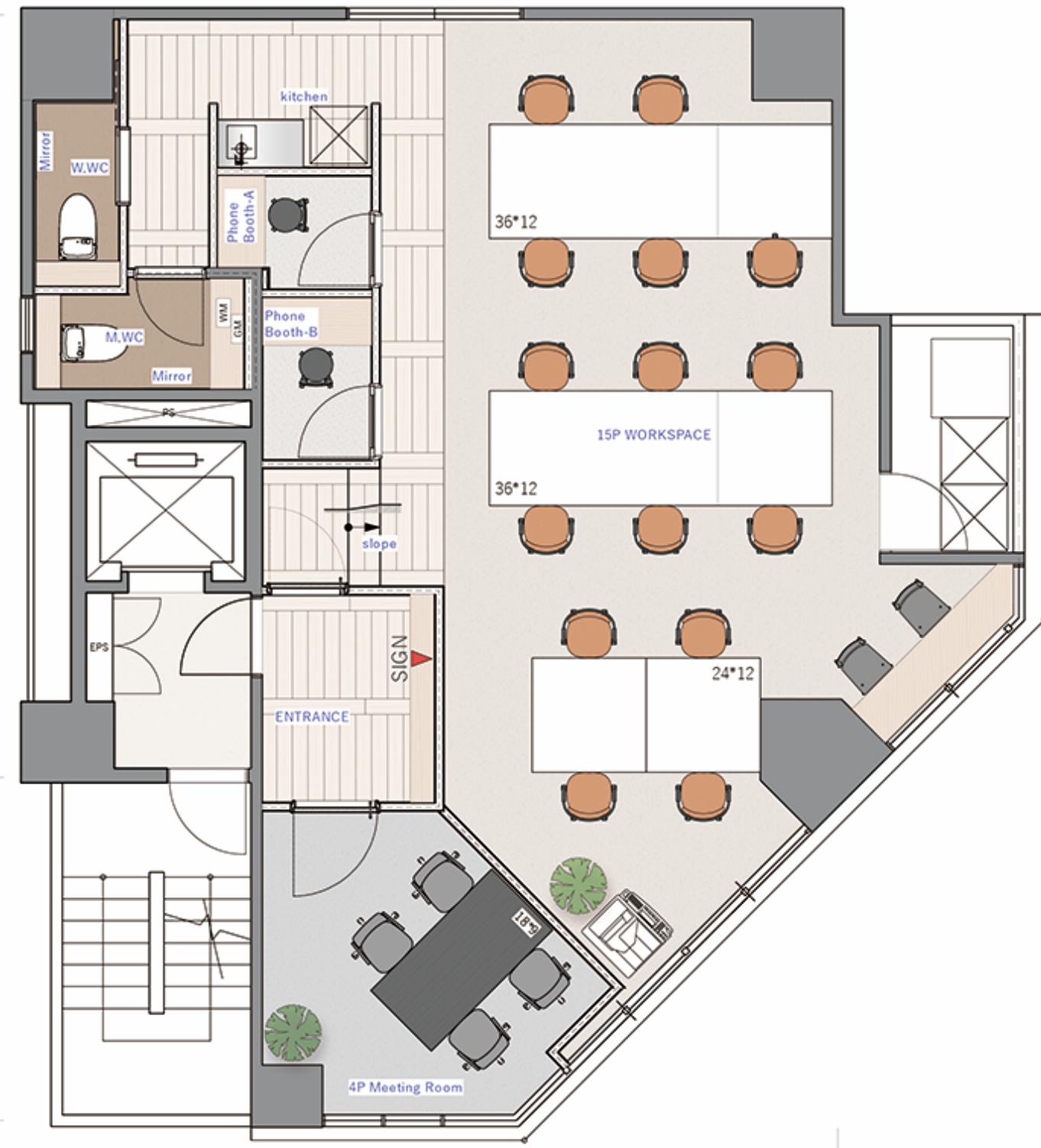 ★ 受付、会議室(4名用)、フォンブース2室、