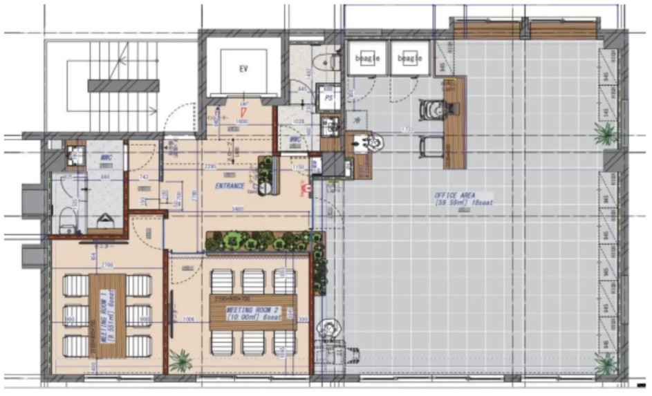 ★ 受付、会議室2室(6名用×2)、テレカンブース×2