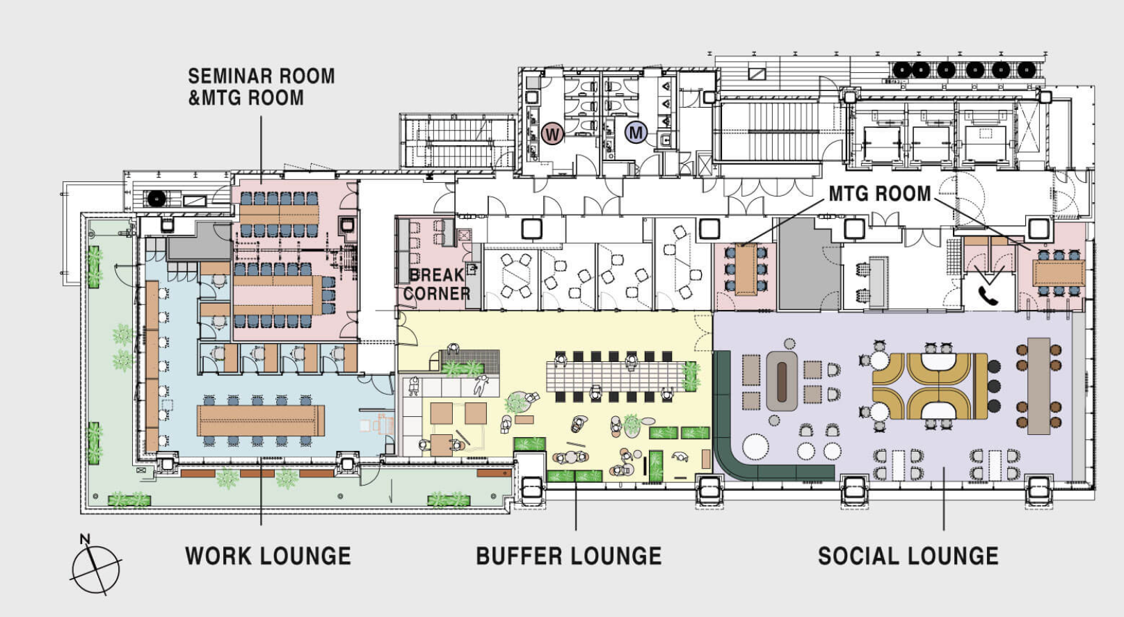飲食可能で休憩スペースとしても活用可能 (Buffer Lounge)