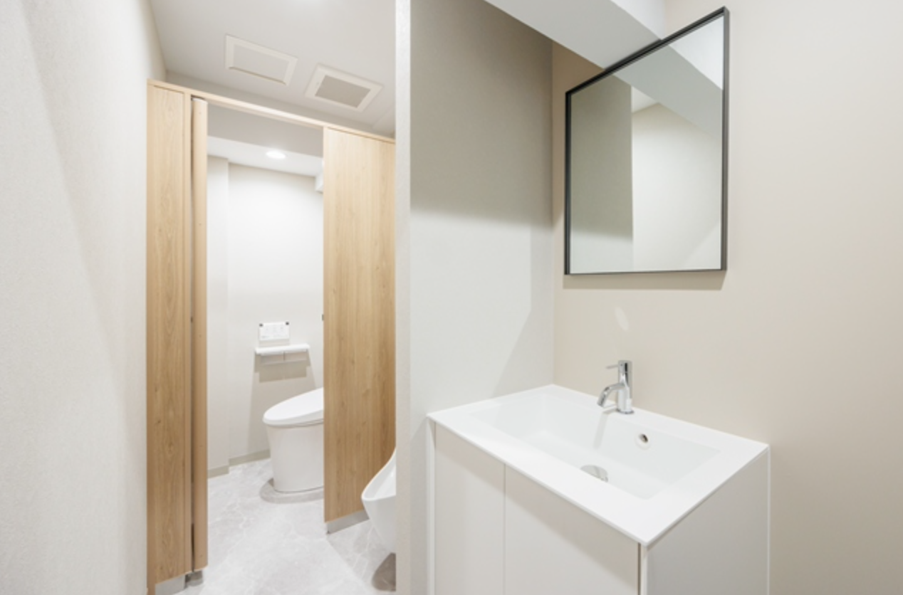 男女別トイレ、34名程度収容可能