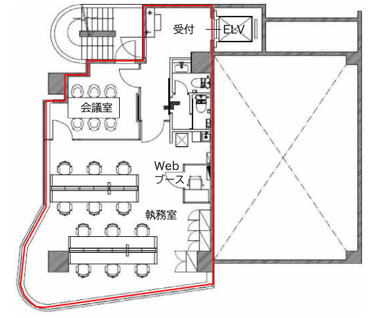 ★ 受付、会議室(6名用)、WEBブース1台、男女別トイレ